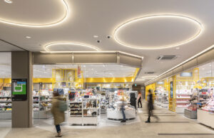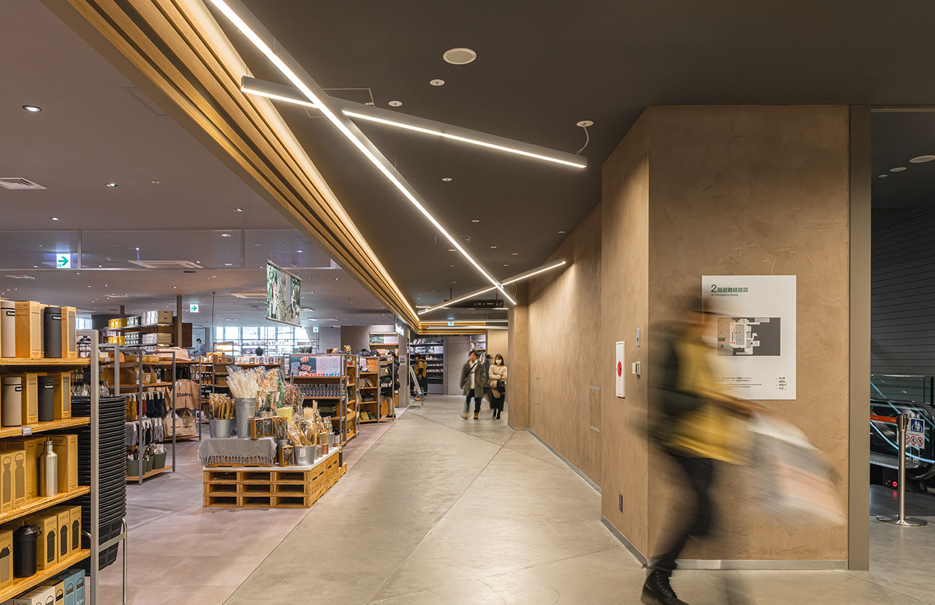 環境設計を担当した地下2階~地上3階までを「一本の樹」と見立て、下のフロアから順に、大地につながる根・地上に導く幹・多様に広がる枝、4階〜6階に位置する水族館の「水」へと続いてゆきます。
